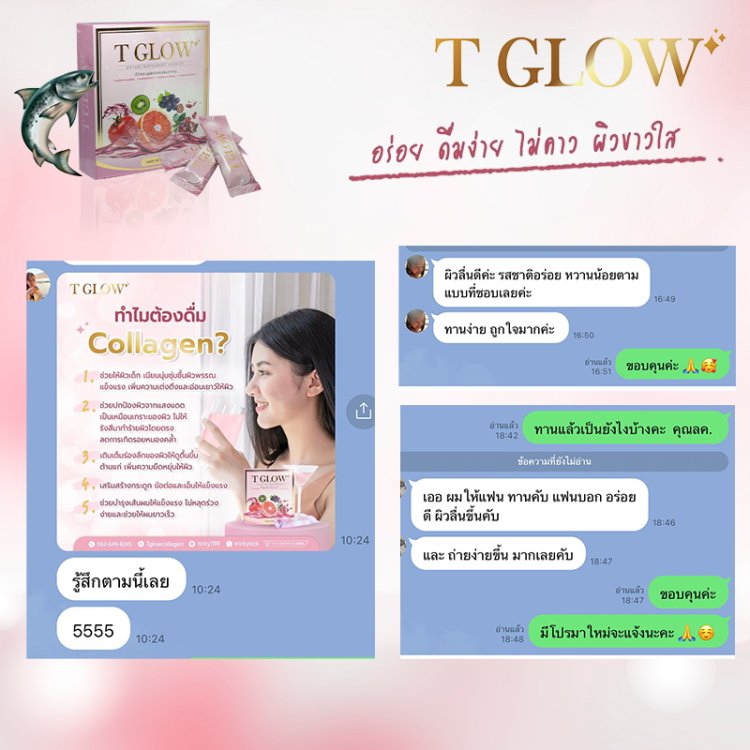 Tglow Collagen ใส่สารสกัดสุดพรีเมี่ยม นำเข้าจากเบลเยี่ยม มีใยอาหารสูง ช่วยระบบขับถ่าย ชงง่าย มีกลิ่นหอมอ่อนๆ รสชาติดีเลยค่ะ
